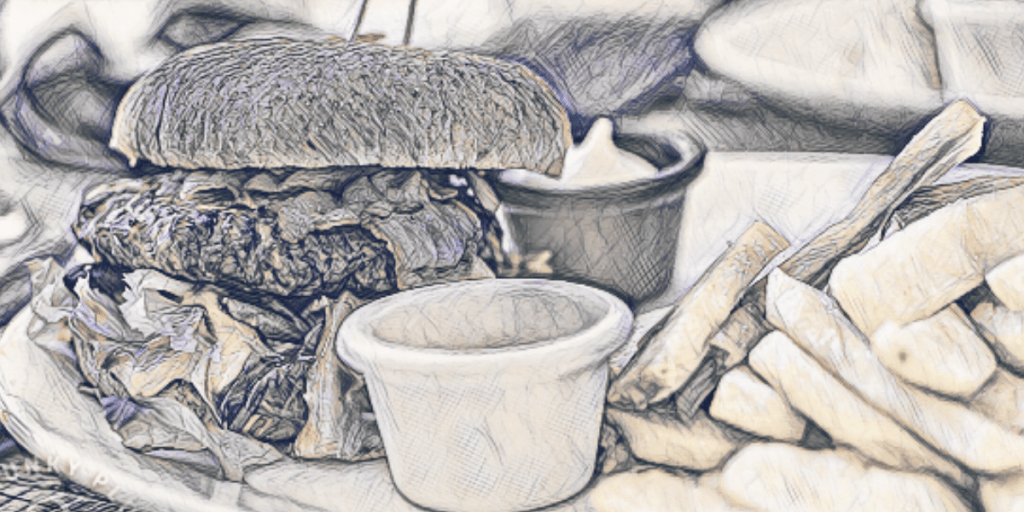 Concept: Hamburgers, pasta, steak, fish and chips, a Thanksgiving or Christmas dinner meal, seafood, or a Caribbean cuisine.