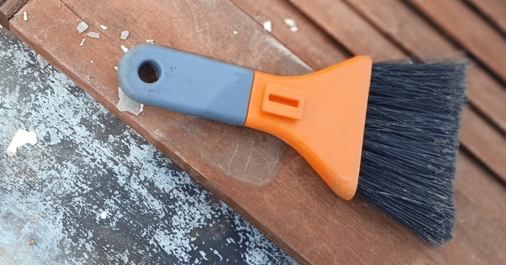 A brush is recommended to remove dust and debris from wood before applying oil or paint.